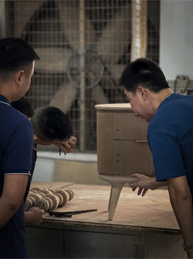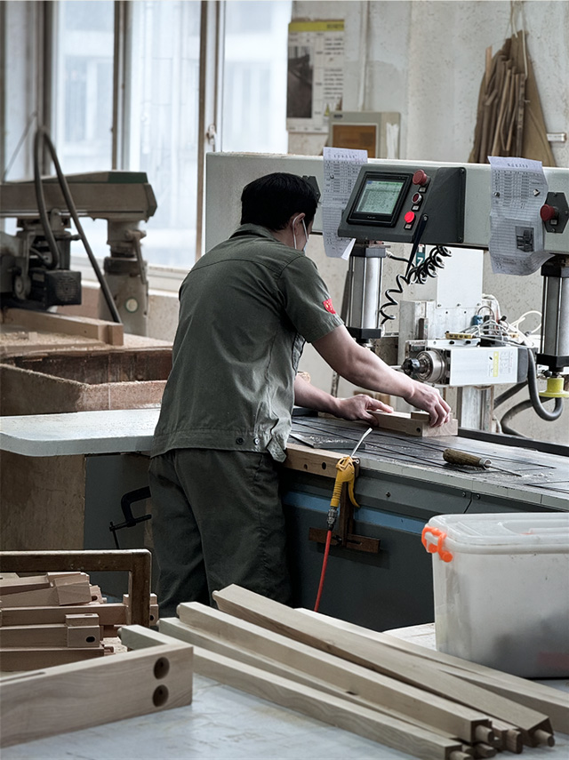 由于其天然属性,木材在运输和存放过程中可能因温度和湿度的显著变化而出现膨胀和收缩等物理形变。因此,极家制定了严格的木材含水率控制标准。我们通过使用烘干房和养生房设备,确保木材在进入制作工序前,其含水率始终保持在9%-11%之间。