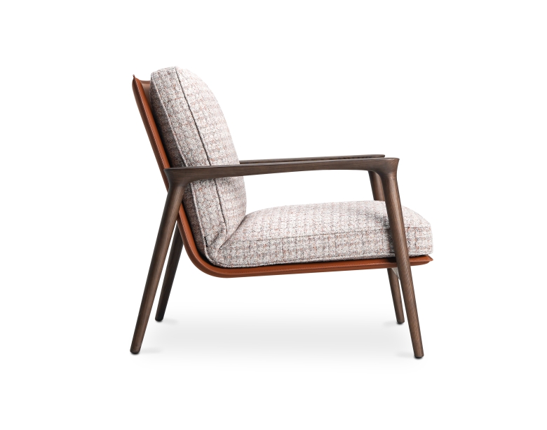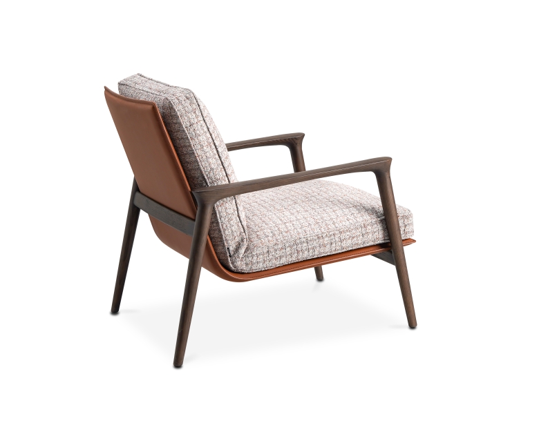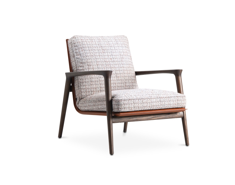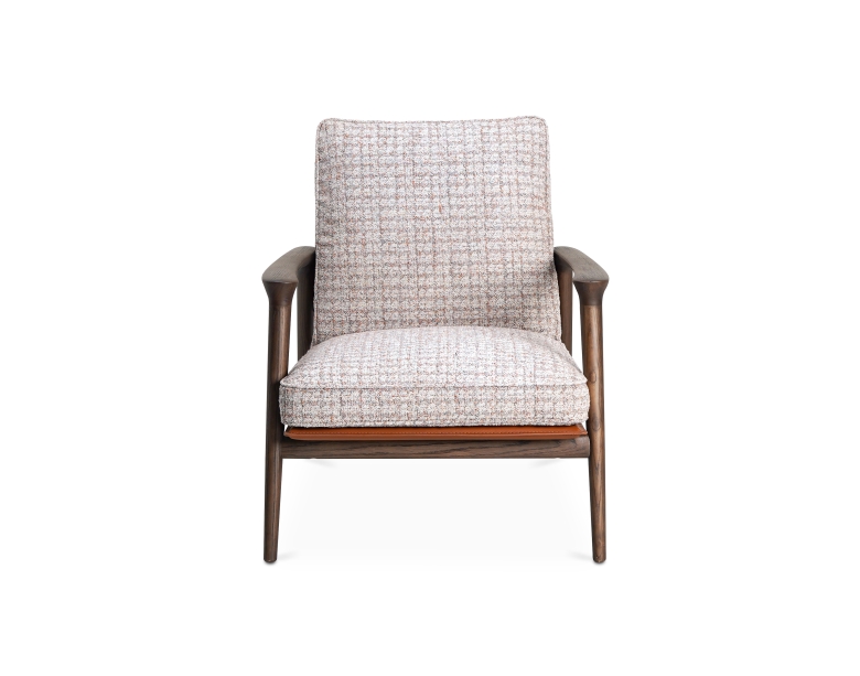 吾栖休闲椅以东方“坐忘”为设计初衷,将实木框架的温润与软垫的包容结合。扶手的弧形线条呼应传统家具的流畅感,靠背角度贴合肩颈曲线,坐感沉稳而放松。简约比例下,木与布艺的碰撞传递出“少即是多”的现代东方美学,适配书房或客厅的静谧角落。