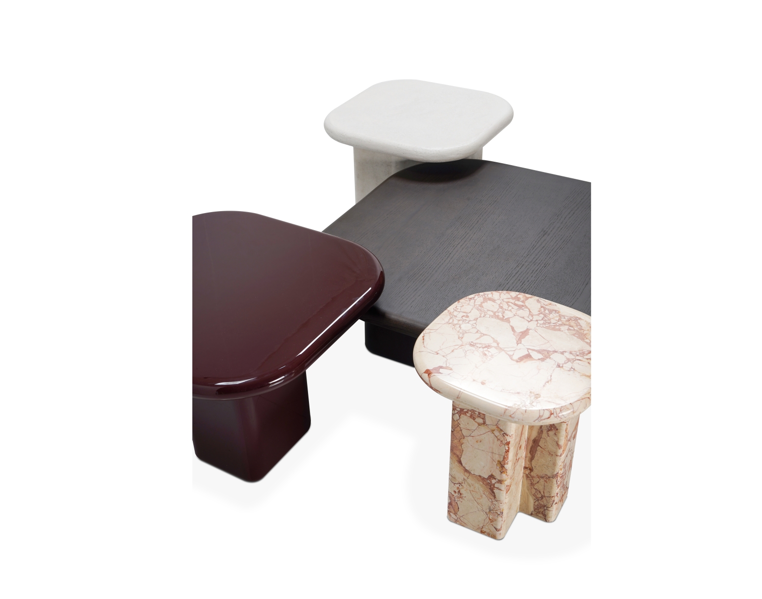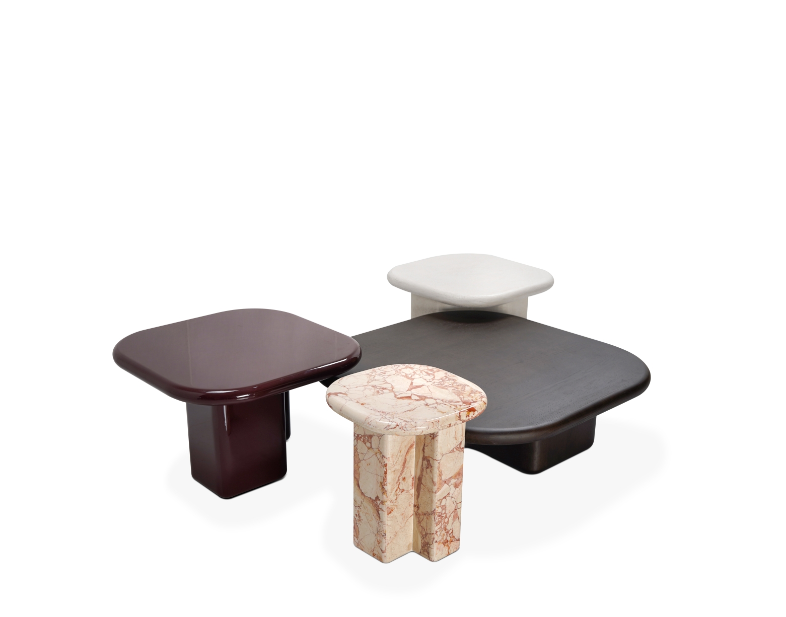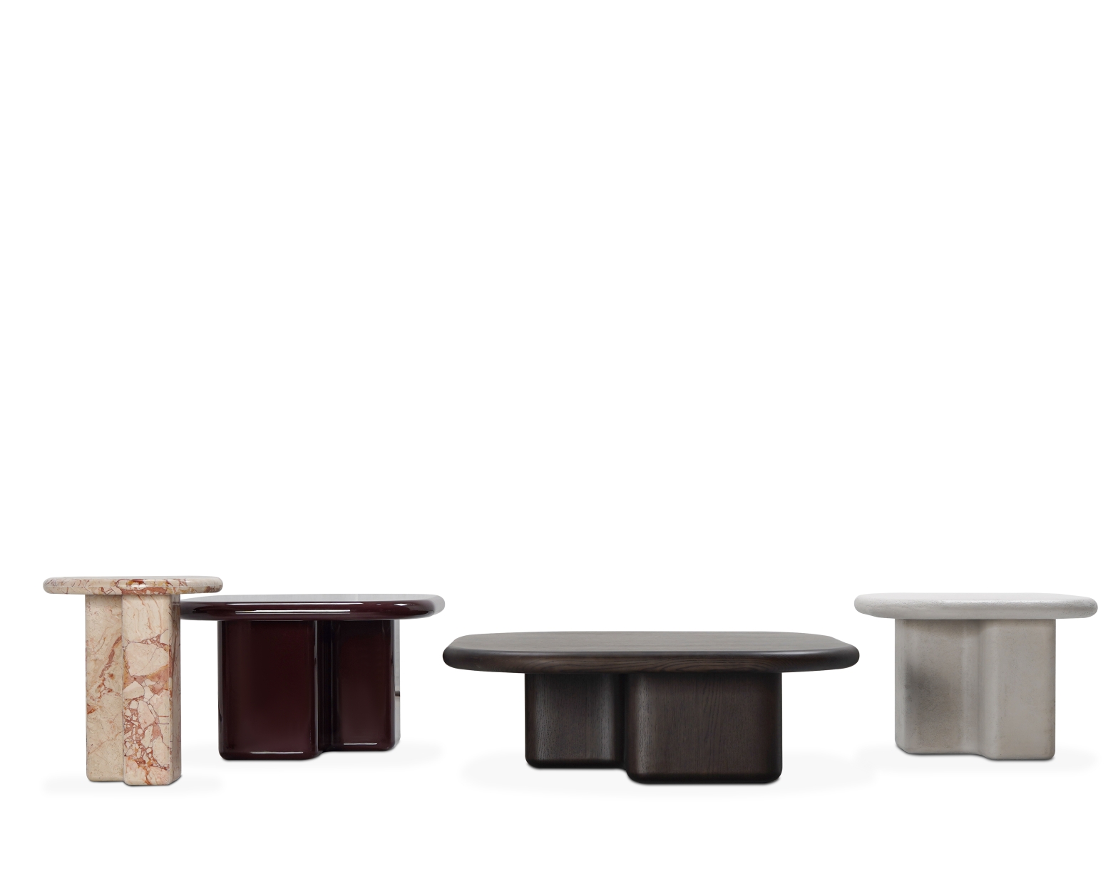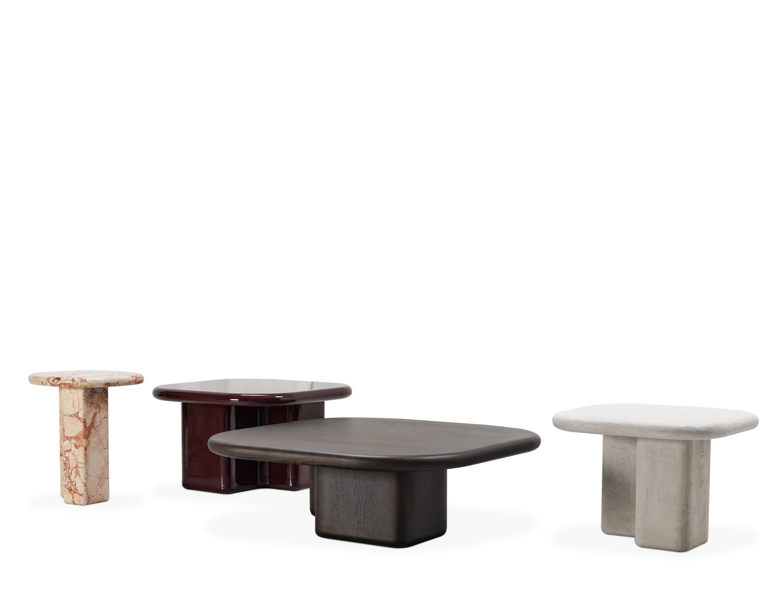 罗纳茶几系列以河流的流动感为灵感,呈现出自然过渡的圆角与多样化的桌面比例。造型饱满而不失理性,既可独立摆设,也适于组合使用,适配多种生活场景。通过对边缘厚度和底座轮廓的精准控制,带来视觉上的轻盈与结构上的稳定,兼具功能性与装饰性。